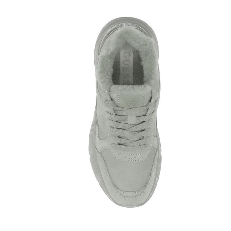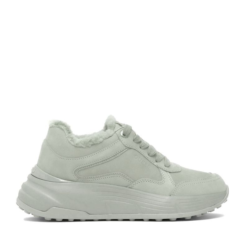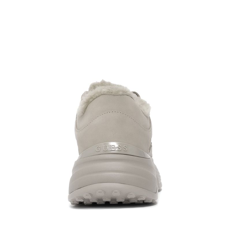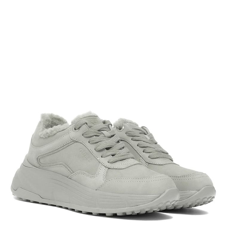 Téliesített, műszőrme részletekkel díszített női sportcipő.