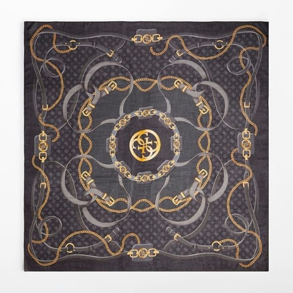 GUESS logó mintás kendő. Mérete: 130×130 cm. Lágy esésű, elegáns női sál.
