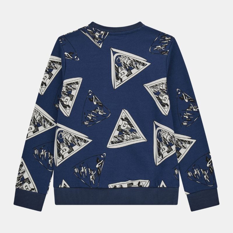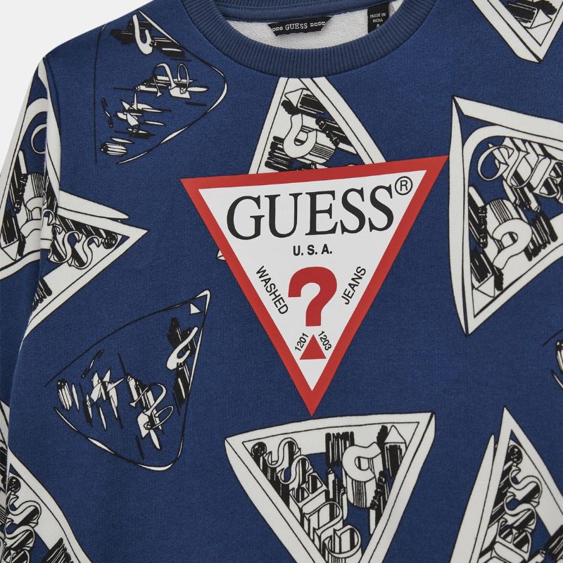 Kék, GUESS logó mintás pamut pulcsi fiúknak.