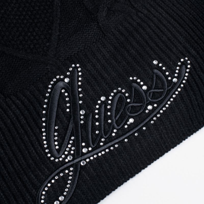 Vastag, kötött sál, hímzett, és strasszokkal díszített GUESS logóval.