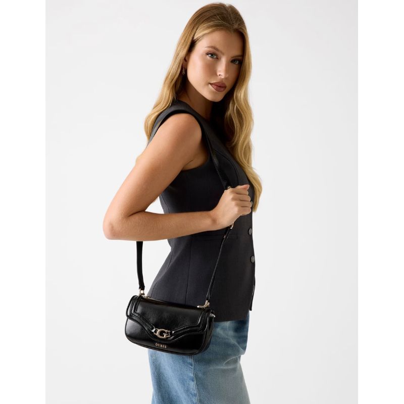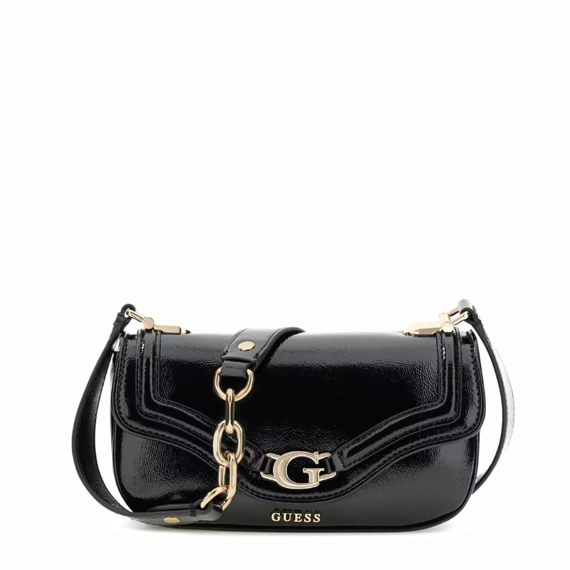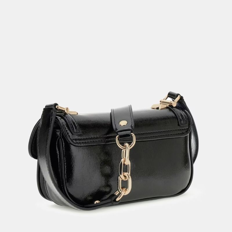 Alkalmi, fényes felületű női crossbody táska láncos vállpánttal.