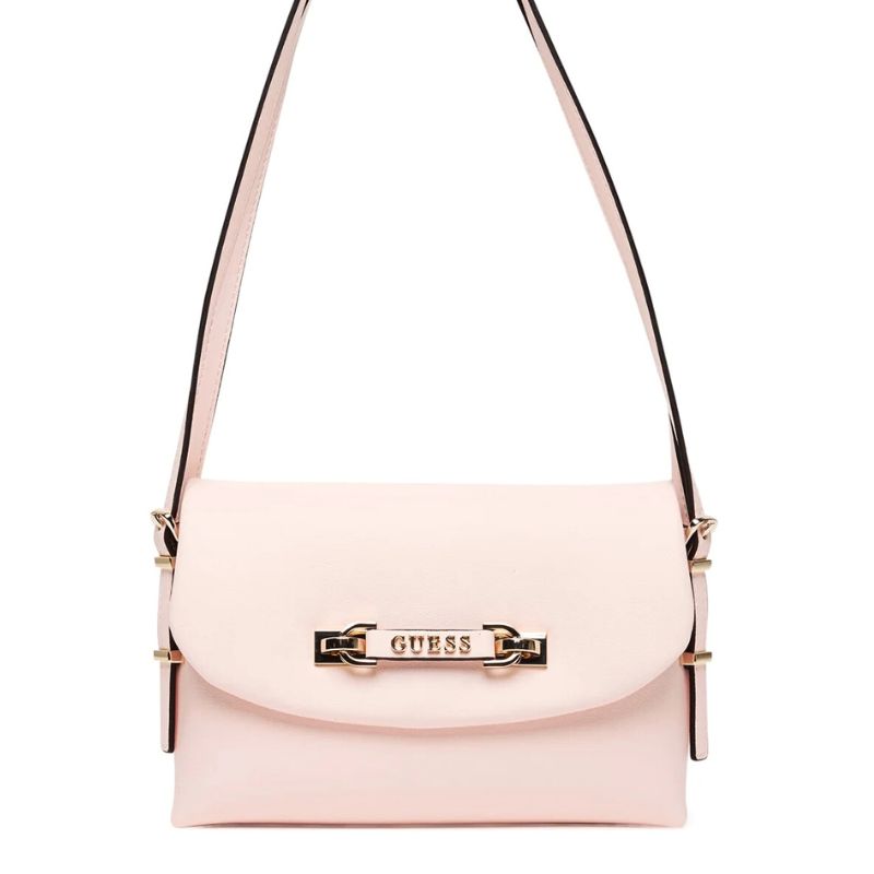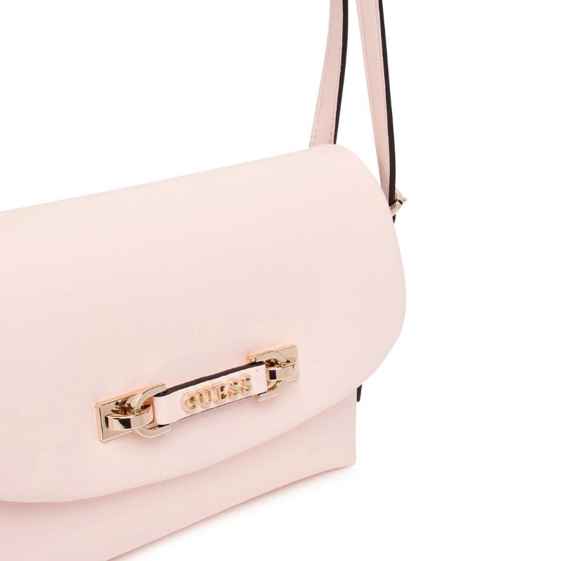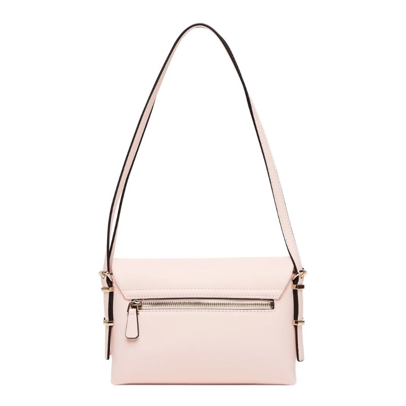 Lehajtós fedéllel záródó, halvány rózsaszín női crossbody táska.
