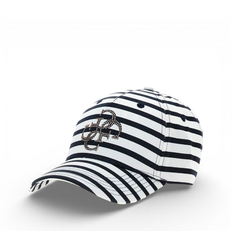 Fekete-fehér csíkos női baseballsapka.