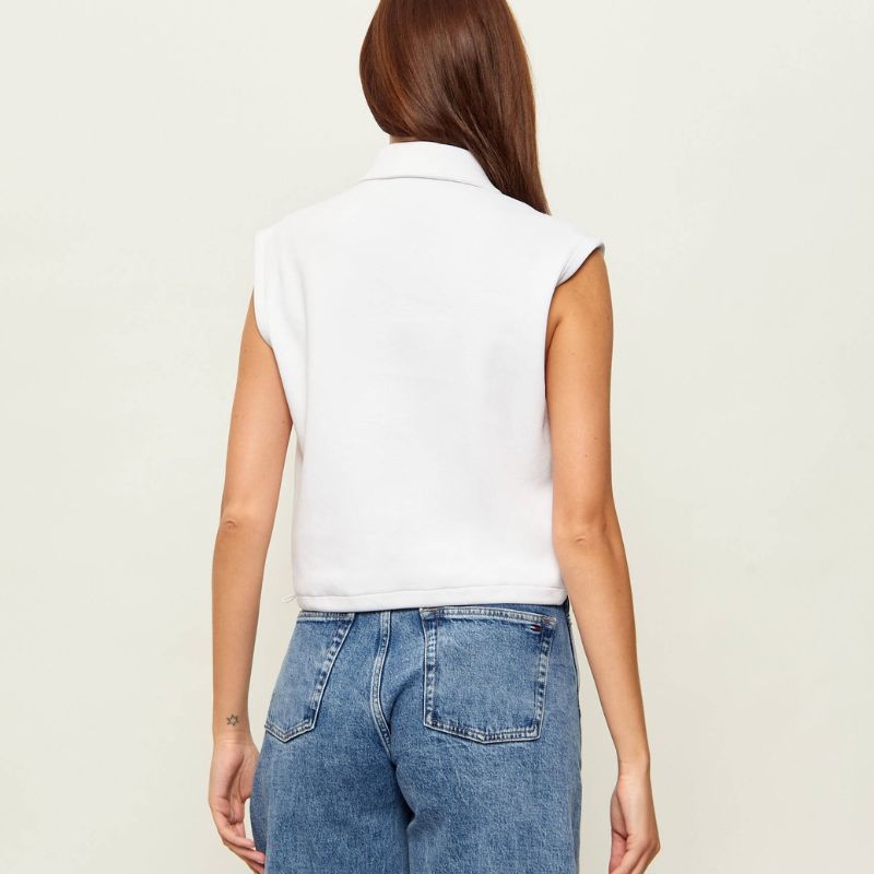Fehér, bő szabású, crop-póló inggalléros nyakrésszel.