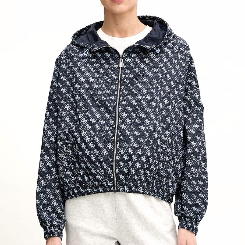Könnyű nyári széldzseki egész felületén logó mintákkal.