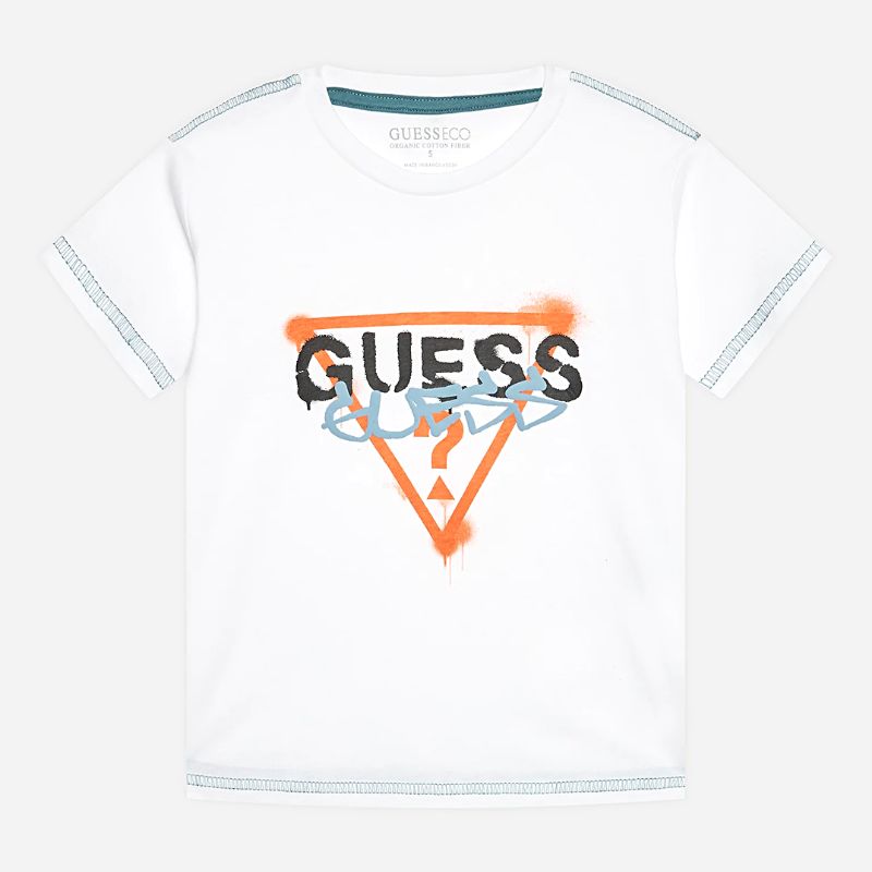 Rövid ujjú póló kisfiúknak. Elején nyomott GUESS logó mintával.