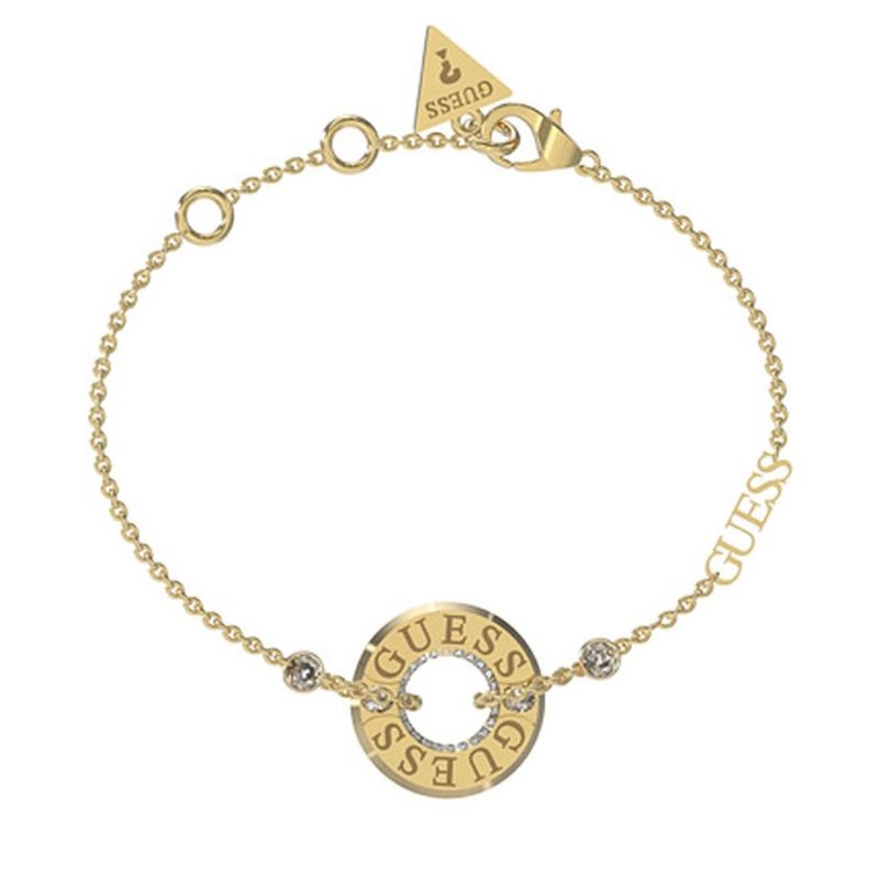 GUESS márkajelzett medállal, ennek mindkét oldalán egy-egy fehér kristállyal.