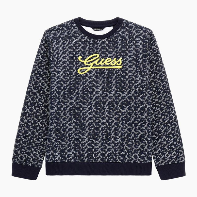 Egész anyagfelületén GUESS logó mintás pulóver fiúknak.