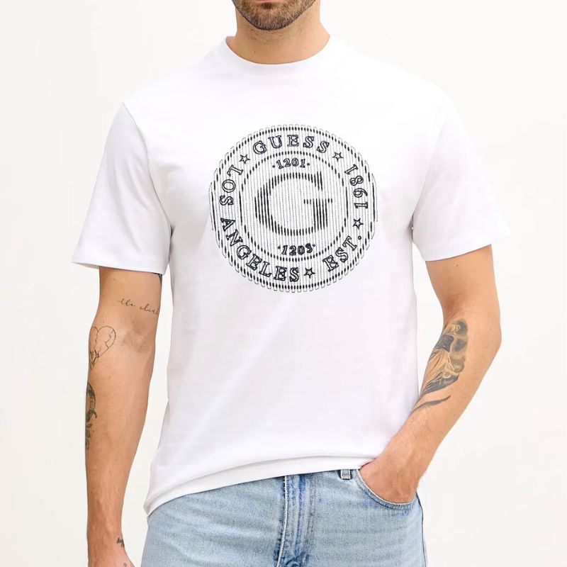 Regular fit szabású pamut póló, elején nagy nyomtatott GUESS logóval.
