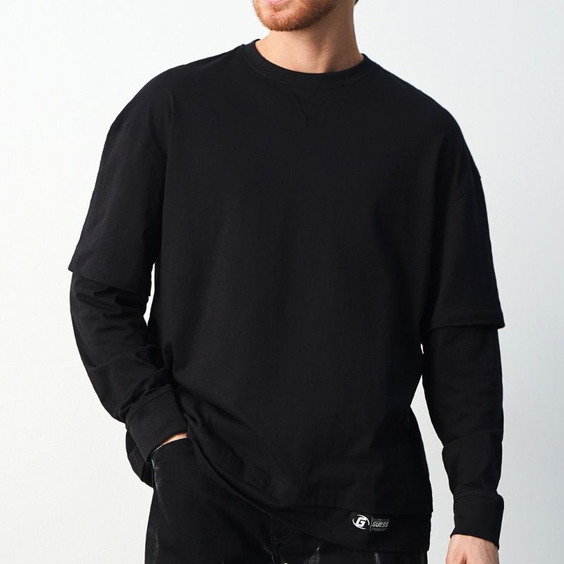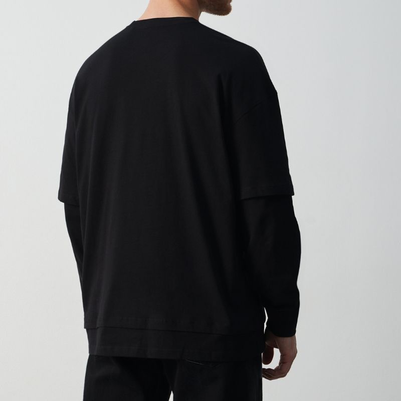 Bő szabású póló dupla, hosszú és rövid ujjakkal.