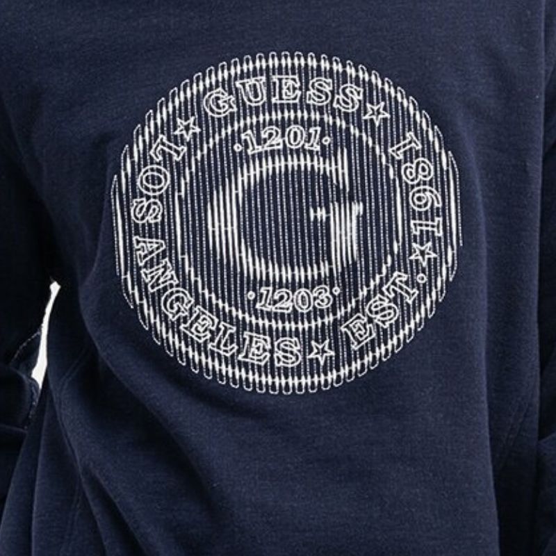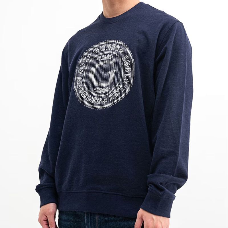 Hosszú ujjú pulóver férfiaknak, elején nagy nyomtatott logó mintával.