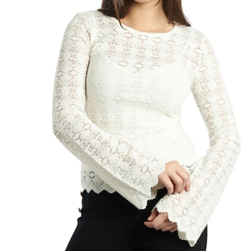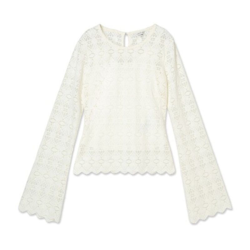 Hosszú, bővülő ujjú, kerek nyakkivágású modell.