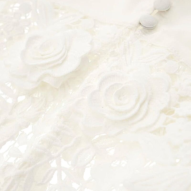 Átlátszó, csipkés, rózsákkal horgolt hosszú női ruha.