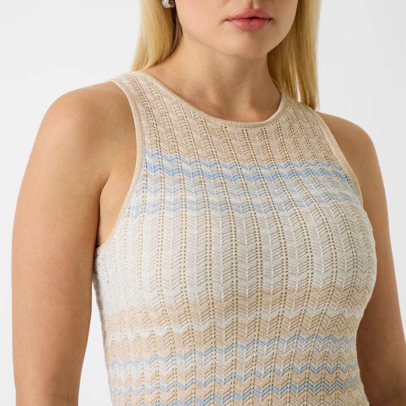 Kerek nyakú, ujjatlan, hátul gombbal rögzíthető modell a GUESS legújabb kollekciójából.