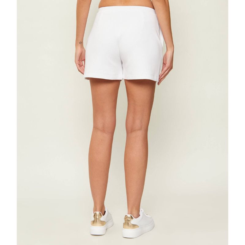 Elasztikus anyagú sportos rövidnadrág, bal szárán háromszög logóval, két oldalzsebbel.