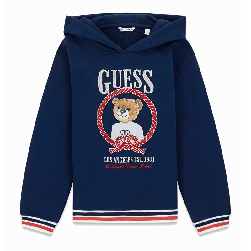 Kapucnis pulóver lányoknak, elején macis lenyomattal.