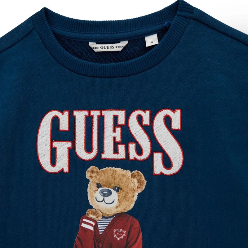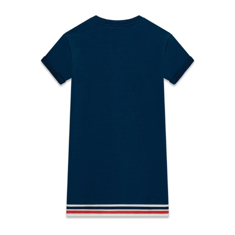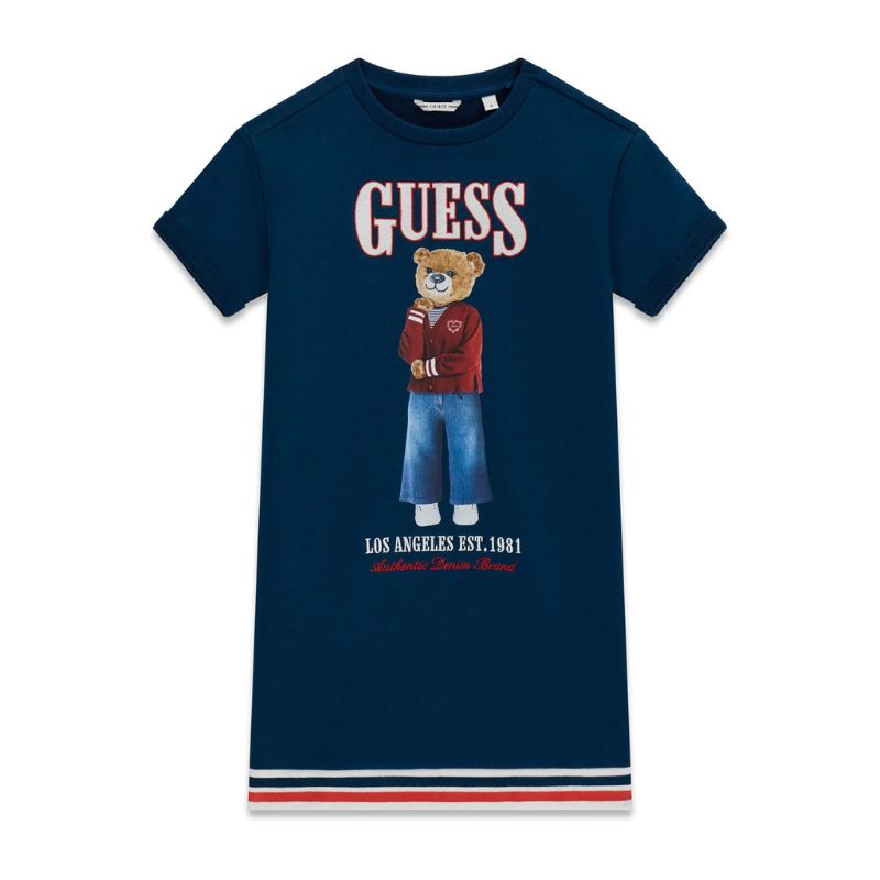 Rövid ujjú, kerek nyakkivágású sportos ruha lányoknak, elején macis lenyomattal.