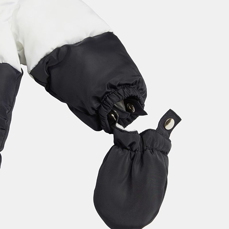 Patenttal rögzíthető kapucnival és kesztyűkkel.
