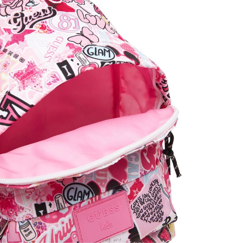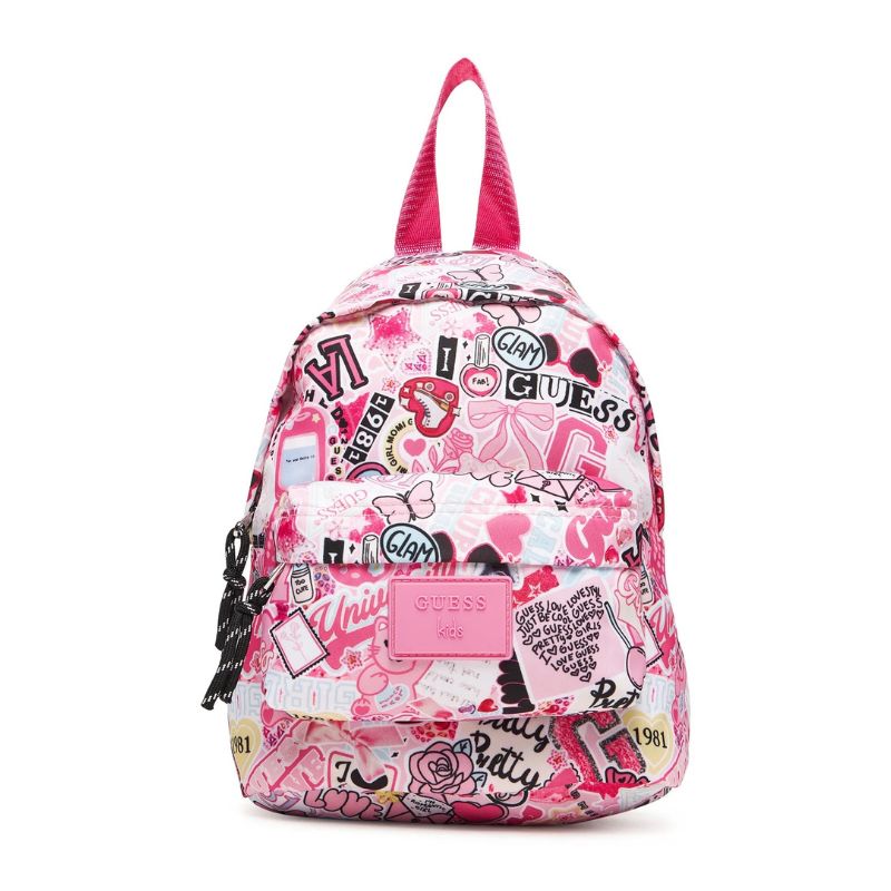 Teljes anyagfelületén színes mintákkal nyomtatott, elején műanyag márkajelzéssel.