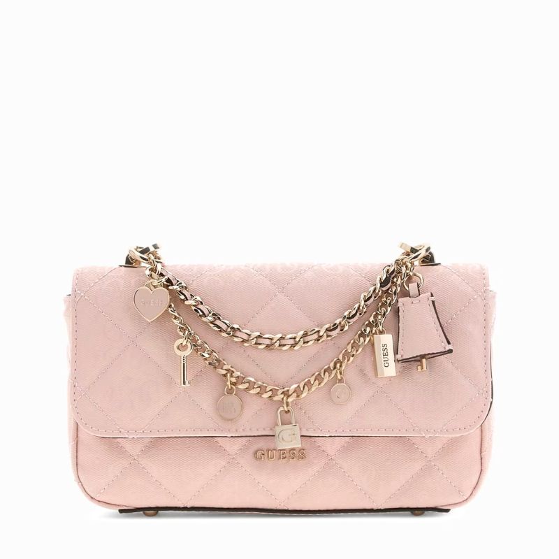 Fényes felületű, anyagában nyomott GUESS logós női crossbody táska.