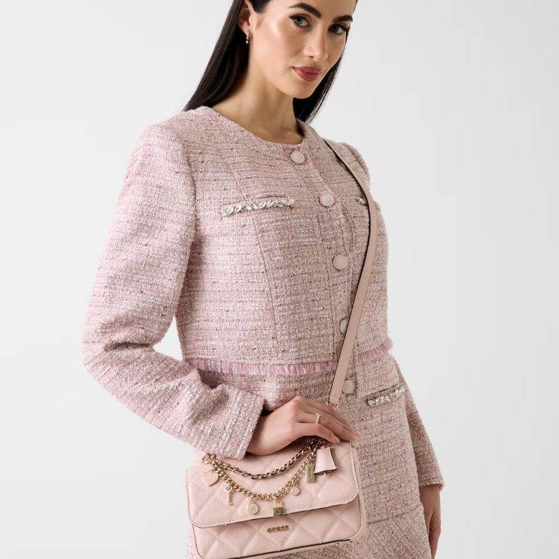 A gyönyörű, apró kis díszek, melyek a táska elején egy láncon csillognak, különleges és egyedi megjelenést kölcsönöznek a táska viselőjének.