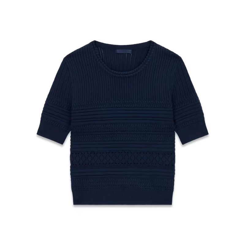 Klasszikus, kerek nyakú stílusával ez a rövid ujjú pulóver kötelező darab a ruhatáradban, ha laza és sikkes stílust szeretnél viselni.