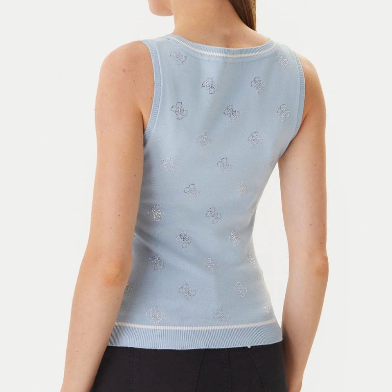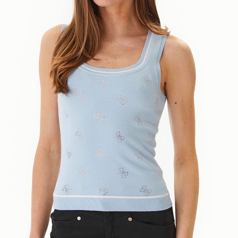 Finom tapintású ujjatlan női felső strasszkövekkel kirakott logó mintákkal.